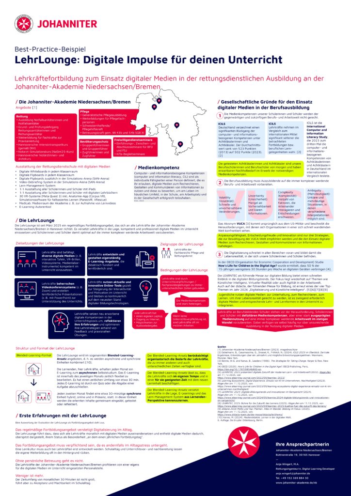 12 Jahre nach Einführung der NotSan-Ausbildung ziehen wir Bilanz: Was hat sich bewährt? Wo bestehen weiterhin strukturelle und didaktische Herausforderungen? Und welche Entwicklungsschritte sind notwendig? Im Anschluss an die Impulsvorträge diskutieren Vertreterinnen und Vertreter aus Schule, Praxis und Ausbildungsperspektive gemeinsam zentrale Fragen zur Qualität, Verzahnung der Lernorte und Professionalisierung. Eine pointierte Standortbestimmung mit klaren Perspektiven für die Weiterentwicklung der NotSan-Ausbildung.